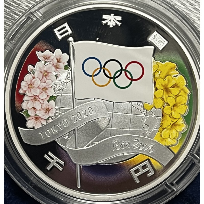 El reverso de la moneda presenta la maravillosa imagen de color de la bandera Olímpica sobre un fondo del mundo, rodeado de maravillosas flores. En la parte superior del reverso, las inscripciones: "日本国" - el país emisor. El anverso de la moneda representa el logo Japonés de los Juegos Olímpicos en 2020 y las inscripciones: "TOKYO 2020 OLYMPIC GAMES" - el nombre de la moneda, "1000 YEN" - el valor nominal y "平成28年" - el año de emisión (2016)